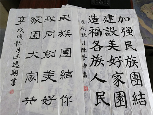 活动中,学校通过开展 “民族团结进步教育课”、主题班会课、板报评比、书法创作、传唱民族团结歌曲、参观科技展、征文等多种形式的活动,让学生传承爱国主义精神,感受传统文化魅力,增强爱国主义情感。