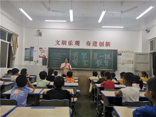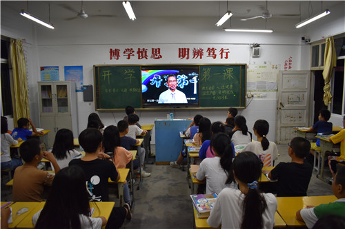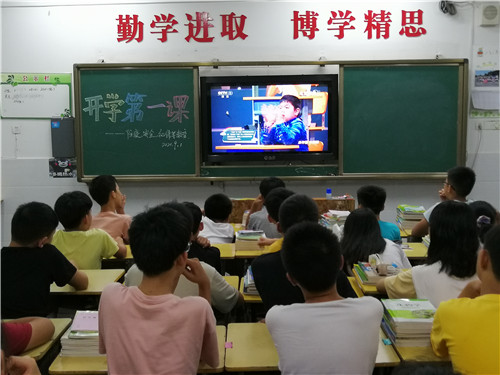 活动中,学校通过开展形式多样的主题班会课、校会和观看中央一台“开学第一课”节目等方式,带领学生们开展了普法宣传、校园安全、勤俭节约、卫生习惯、爱国、心理健康等多方面的教育。同学们在认真学习之后纷纷许下承诺,表示会用自己的实际行动来继承和发扬爱国主义精神,不断增强责任意识,为实现中华民族伟大复兴积蓄思想、智慧和力量。
