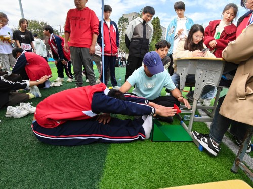 坐位体前屈,立定跳远、引体向上、仰卧起坐、1分钟跳绳,这不仅仅是意志的较量、速度的挑战,更锻炼了体魄,激活了斗志,充分彰显了追求卓越的青春风采。