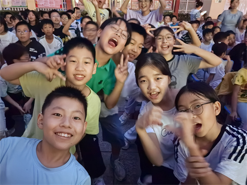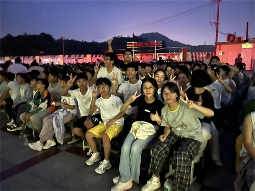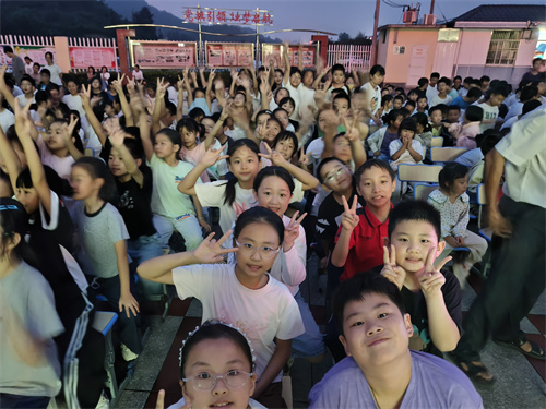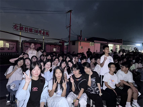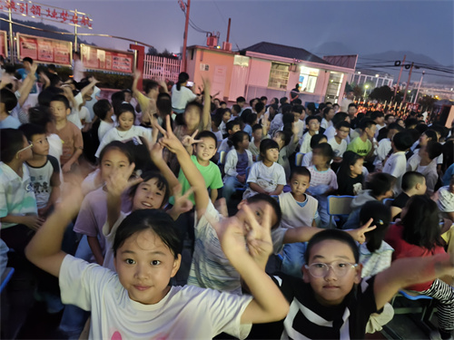 欢聚一堂观看露天电影,师生同乐分享美好时光
