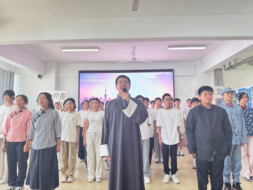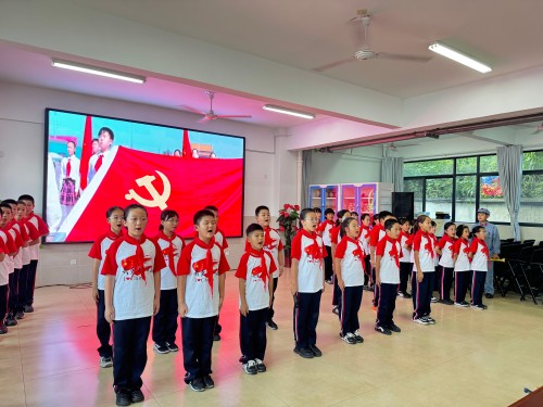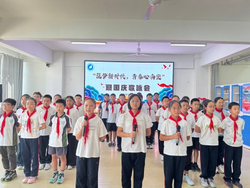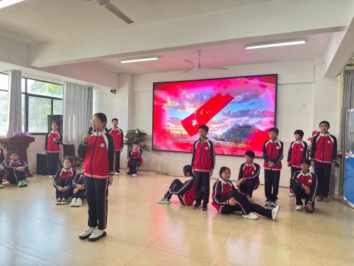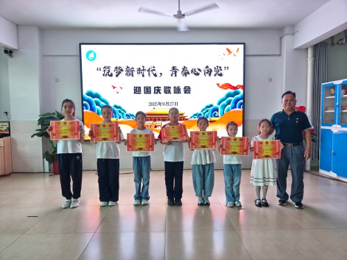 活动现场,各班级学子眼神明亮而坚定。从《没有共产党就没有新中国》的铿锵旋律,到《新时代的好少年》的活泼传唱;从《我和我的祖国》的深情告白,到《少年中国说》的激昂吟诵 —— 每一首歌曲旋律都描绘着新时代的壮阔图景。同学们站在舞台中央,挺直的脊梁透着少年的朝气,挥动的国旗映着纯真的笑脸,他们将对祖国的祝福、对未来的向往融入每一个音符,用稚嫩却有力的嗓音,诉说着 “请党放心,强国有我” 的坚定誓言。一首首红歌、一曲曲赞歌,不仅唤起了师生们对红色历史的记忆,更凝聚起新时代青年紧跟党走、筑梦前行的磅礴力量。