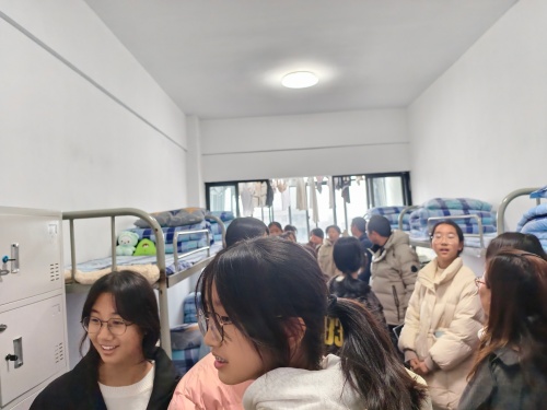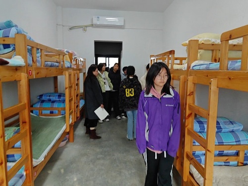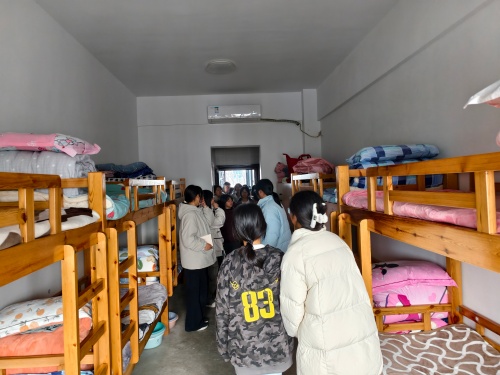 培训会后,女生寝室长和生活老师一同来到寝室进行参观和学习交流,对日常寝室检查和管理细节问题进行了探讨,进一步明确寝室管理检查细则和要求。