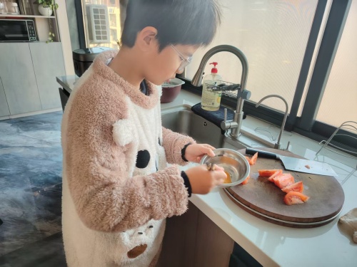 厨房里,锅碗瓢盆碰撞出悦耳的交响曲,同学们系上围裙,为长辈烹制一顿充满心意的饭菜。虽然有的菜品卖相不够精致,有的味道略显青涩,但当长辈们品尝到孩子亲手做的食物时,脸上都洋溢着欣慰与幸福的笑容。