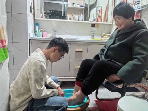 一张张照片定格下温暖的瞬间:有同学弯腰为长辈们洗脚时的专注,有同学与长辈并肩做家务活的默契,有同学将亲手制作的贺卡和书信递到长辈手中时的羞涩……这些画面没有华丽的修饰,却满是真情实感,成为这个元旦假期最珍贵的礼物。