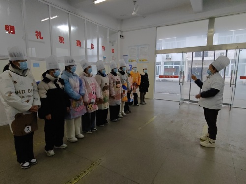 活动开始前,班主任和食堂负责人为参与的同学们开展了岗前培训,详细讲解了厨房的卫生要求、操作规范以及各类工具的使用方法,强调了食品安全的重要性。同学们认真聆听,仔细记录,迫不及待地想要投入到帮厨工作中。