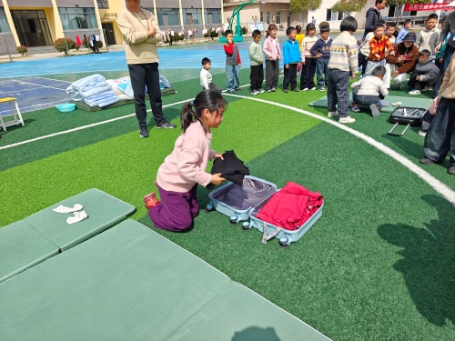 本次比赛按中、小学不同年龄段分组进行,比赛内容丰富多彩,有整理书桌、戴红领巾、扎辫子、系鞋带、衣箱整理、分豆子、铺床叠被、水果拼盘、包饺子、缝纽扣、包书皮等项目。随着裁判员哨声的响起,参赛选手紧张而熟练的忙活起来,在同学们的加油声中,选手们快速、有序的完成了各项比拼任务。经过激烈角逐,部分优秀学生脱颖而出并获得了“生活技能能手”荣誉称号。