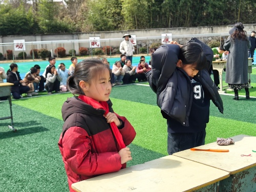 系红领巾、扎头发