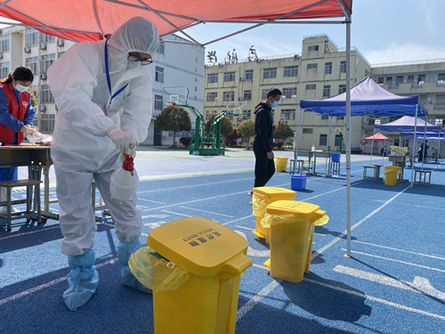 演练中,各岗位工作人员、志愿者、医护人员及驻点指导员,尽心尽责,按照规定流程有序开展各项工作,保证了演练工作的整体流畅,历时三个小时,全部完成学校1075人的核酸检测采样工作。演练结束后,按照规定处理好医疗废弃物资,并对演练场地进行消毒。