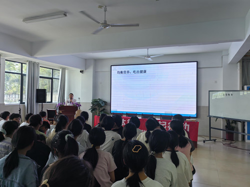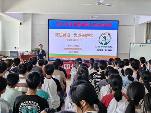 讲座特邀安徽省疾控中心营养健康专家徐粒子担任主讲,徐老师结合青少年身体发育特点,用通俗易懂的语言、生动形象的案例,深入浅出地讲解了过量摄入油、糖对身体健康造成的危害;通过对比数据与直观图片,让师生们深刻认识到不合理饮食带来的隐患。