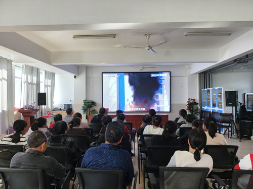 学校组织教职员工集中观看“2025年消防安全警示教育片《火患猛于虎,责任重于山》”,并参加消防演练。