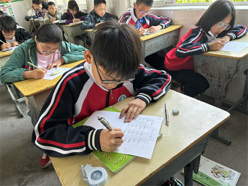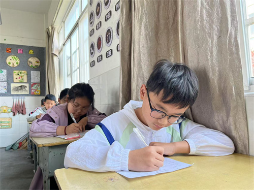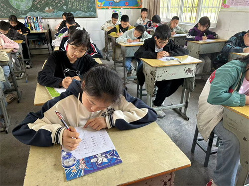 赛场氛围浓厚而紧张,孩子们热情高涨,神情专注。比赛过程异常激烈,瞧,孩子们用心聆听,或奋笔疾书、或苦思冥想,享受着一笔一画嵌入纸张的酣畅淋漓。