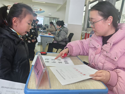 语文测评遵循认读规律,多形式检验基本知识和技能。现场书声琅琅,孩子们在快乐游戏中展现自我,增强自信。