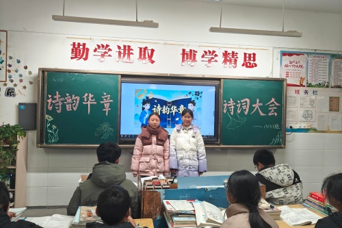 初赛环节于各班教室有序开展,语文教师们化身专业且严谨的评委,通过朗诵、背诵、诗词问答等多元丰富的形式,全方位、多角度考察学生的诗词储备量、文化素养积淀与语言表达能力,让每一位学子都能在诗词的海洋中尽情遨游、展现自我。