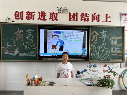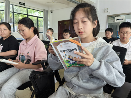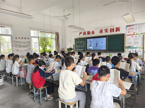 高年级的孩子们积极参与读书分享,一本本佳作在他们手中如珍贵宝藏被捧读。深情朗读间,字句流淌;会心聆听时,情感交融。